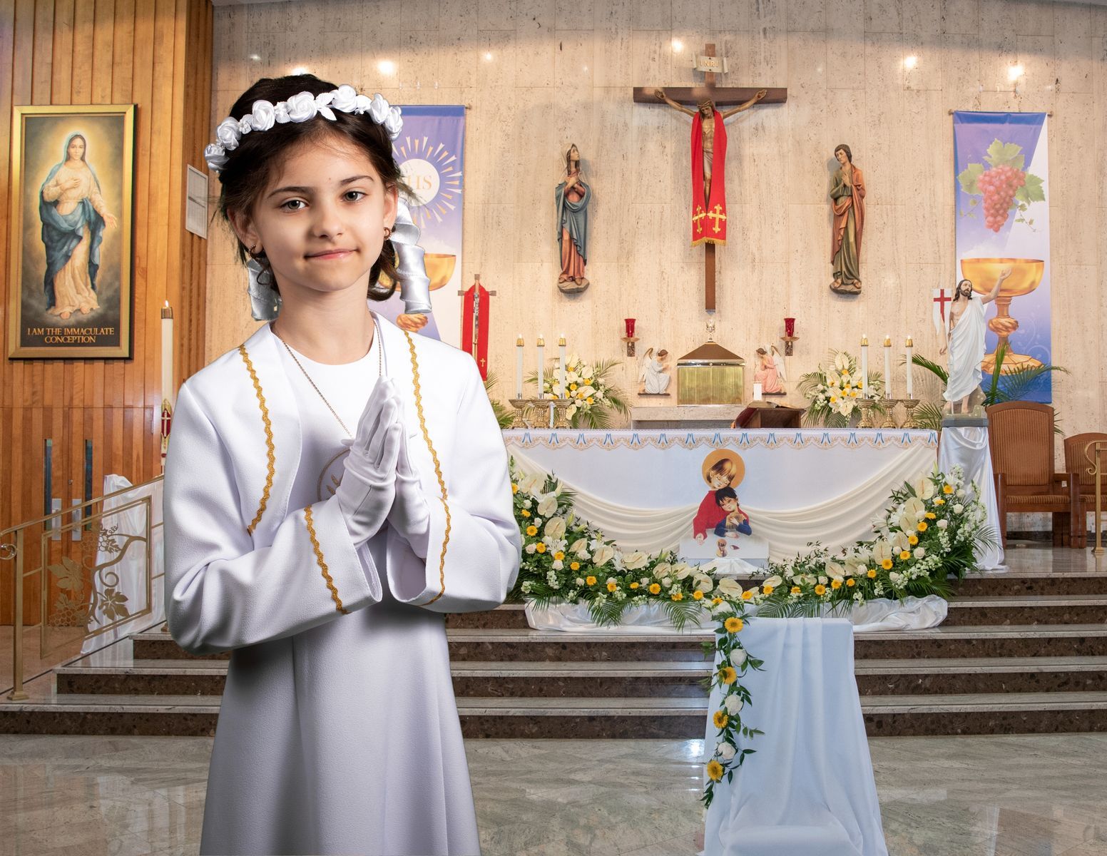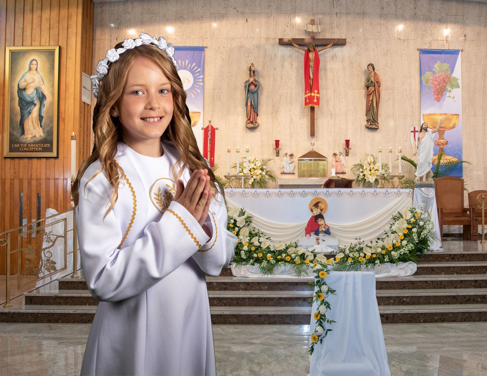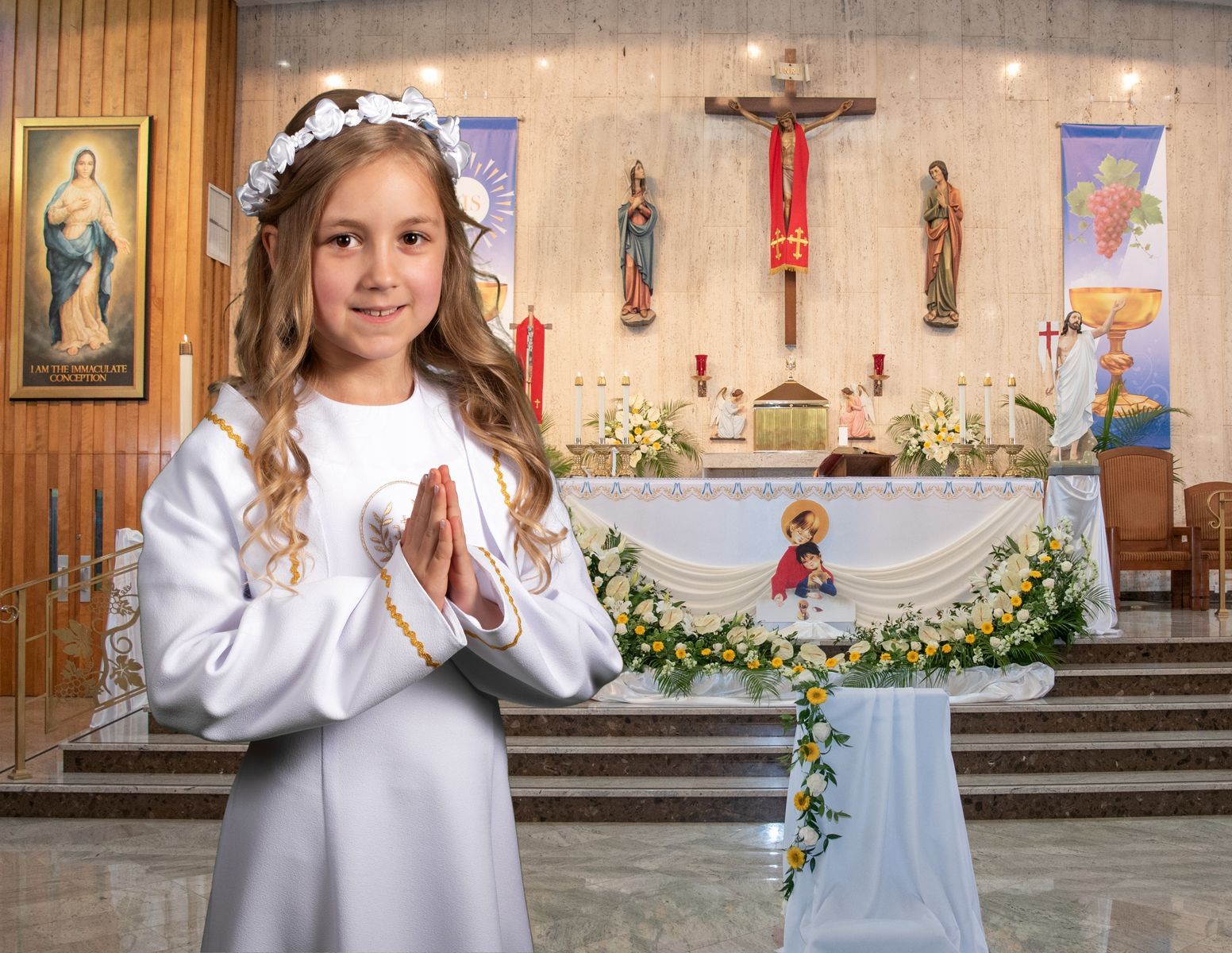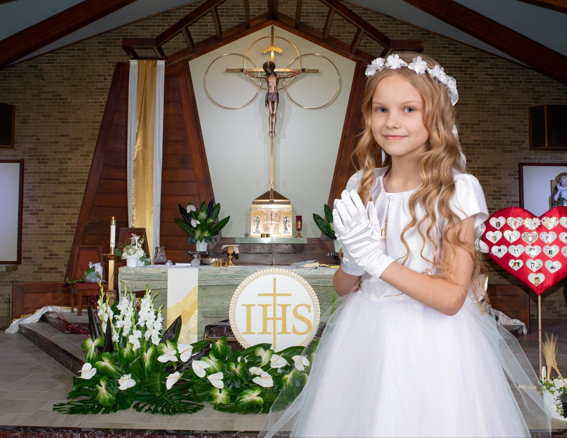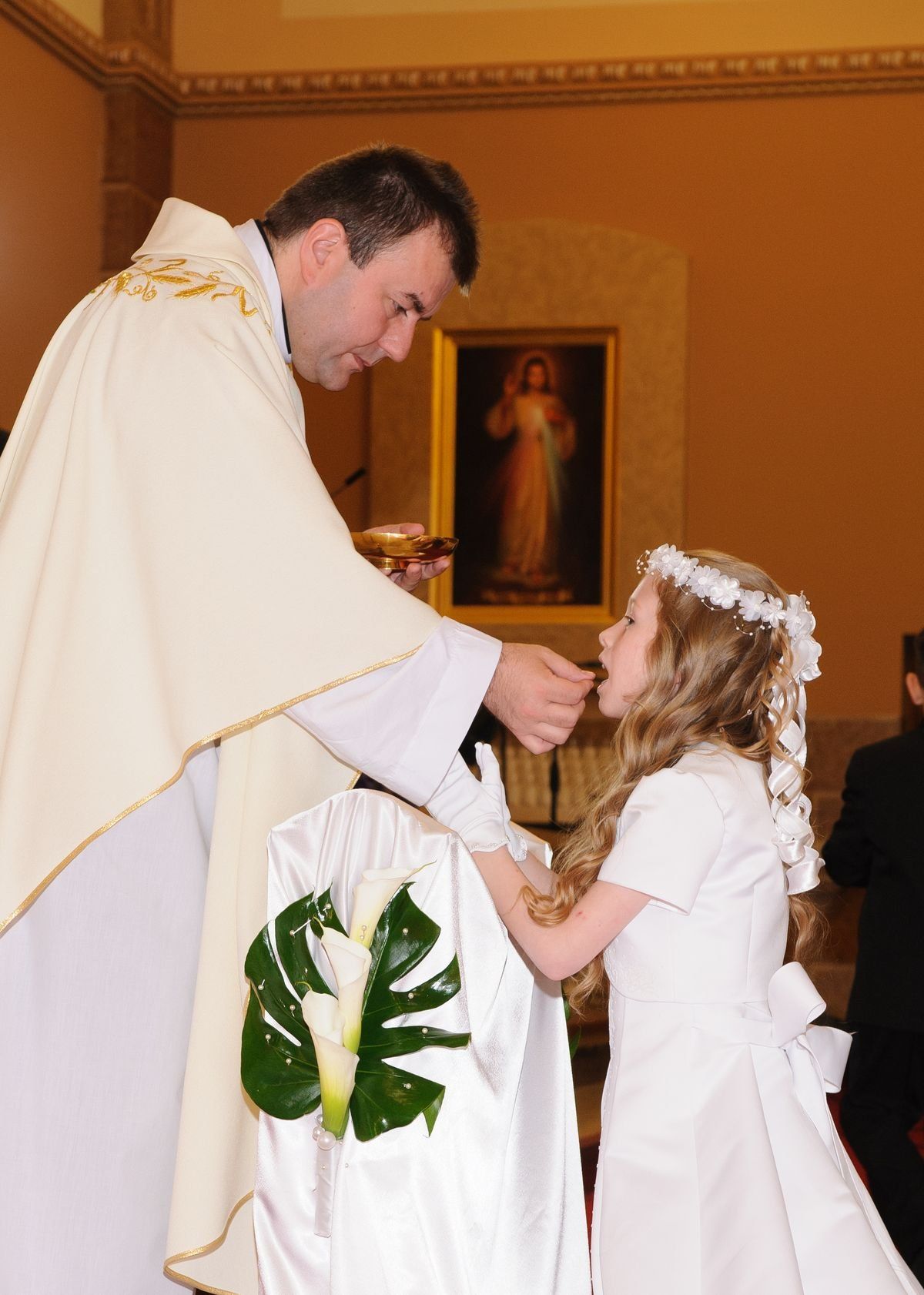 - Zdjecia w momencie przyjmowania komunii: 1 szt 8x10" i 2 szt 5x7"